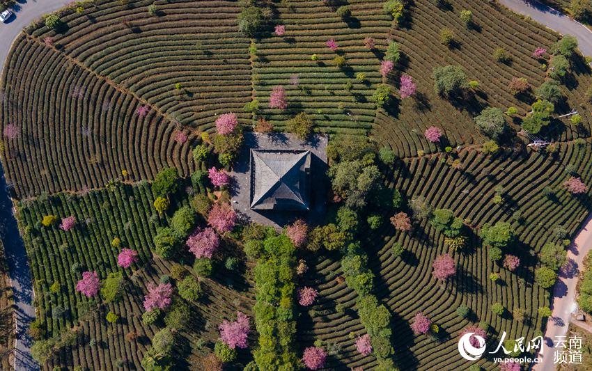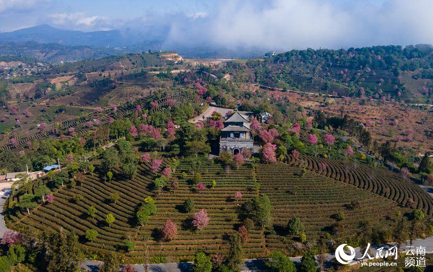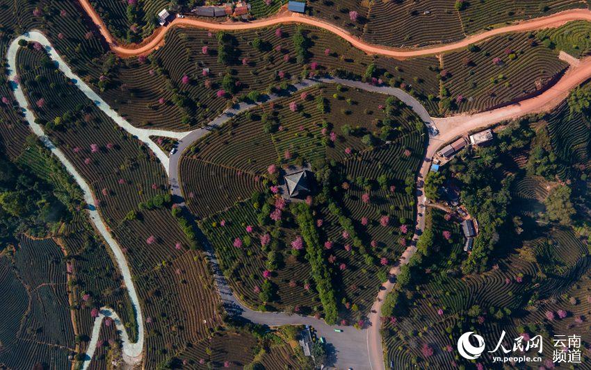 1月7日,普洱市思茅區(qū)萬(wàn)畝生態(tài)茶園內(nèi)冬櫻花盛開。(人民網(wǎng) 虎遵會(huì) 攝)