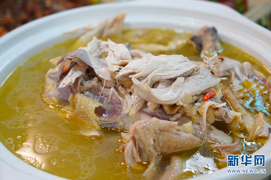 廣受食客好評(píng)的土罐燉土雞,在飯桌上常常穩(wěn)居“C”位(2020年12月30日攝)。新華網(wǎng)發(fā)(李丹 攝)