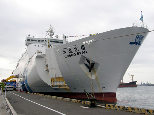 10日上午8時,載著339名旅客的“中遠之星”客滾輪經過約9個小時的航行,從廈門渡海直航靠泊高雄港3號泊位。據悉,這是目前海峽兩岸最大、最豪華客滾船“中遠之星”直航臺灣的第三個城市,也是該輪開通廈門-臺中、廈門-基隆常態化客滾直航航線后的又一次新跨越,標志著廈門與臺灣的港航合作又開新局。