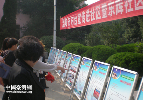 溫嶺市臺辦重視抓好涉臺宣傳“五進”活動,即涉臺宣傳進機關、進學校、進鄉鎮、進社區、進臺企。太平街道在涉臺宣傳教育進社區方面工作扎實有效,積累了許多有益的經驗,建立健全了涉臺宣傳教育進社區工作機制。各社區醒目位置張貼有涉臺宣傳標語;宣傳櫥窗有涉臺欄目內容;節假日利用活動場所開展娛樂活動,寓涉臺知識于娛樂之中;為居民提供涉臺知識的咨詢等等。