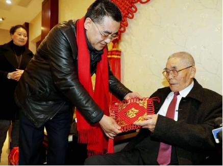 蘇州臺辦主任楊軍特意前去看望趙東發老人,為老人送上百合花、中國結和蘇式糖果等禮品,向老人送上溫情祝福,百合花寓意家庭和和美美,中國結代表希望兩岸親情不再離,蘇式糖果則是讓老人回憶起家鄉的味道。