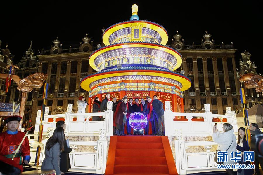 2月22日,在比利時(shí)首都布魯塞爾大廣場(chǎng),嘉賓參加元宵燈展亮燈儀式。22日晚,璀璨奪目、中西合璧、別具一格的中國彩燈點(diǎn)亮了“歐洲心臟”布魯塞爾的大廣場(chǎng),拉開了中國元宵燈展的帷幕。此次元宵燈展是2018中歐旅游年的重頭活動(dòng)。新華社記者葉平凡攝