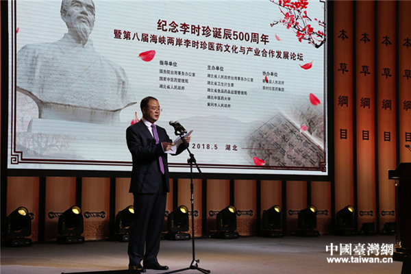 李時珍誕辰500周年暨第八屆海峽兩岸李時珍醫(yī)藥文化與產(chǎn)業(yè)合作發(fā)展論壇在湖北武漢舉行。(中國臺灣網(wǎng) 郜利敏 攝)
