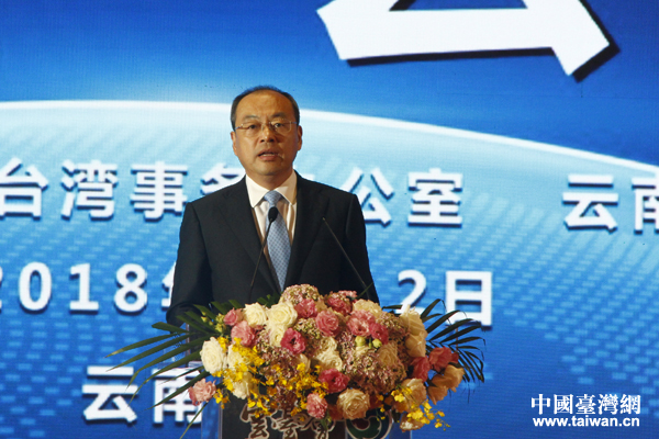 中共云南省委副書記、省人民政府省長阮成發出席會議并致辭。(中國臺灣網 王怡然 攝)