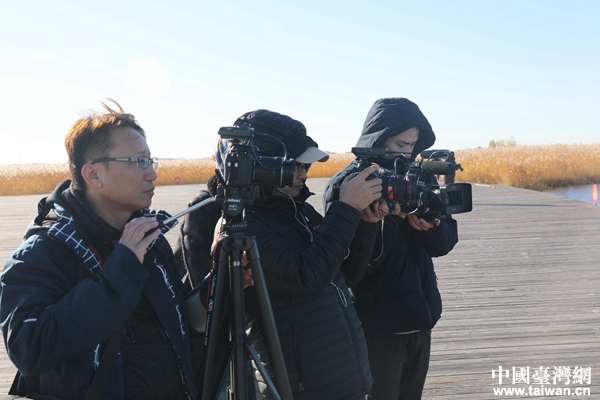 兩岸媒體記者在扎龍國(guó)家級(jí)自然保護(hù)區(qū)忙著拍攝。(中國(guó)臺(tái)灣網(wǎng) 李奕均 攝)