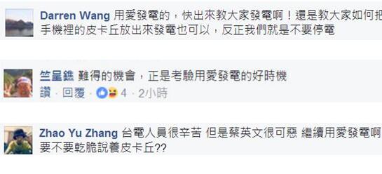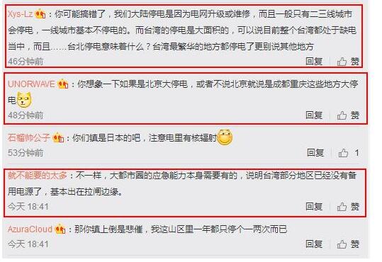 如今只從“全臺大停電”這件事來看,此言確實在理!更有網友指明停電事件直接反映出了臺灣在應急處理的能力上有多缺乏。