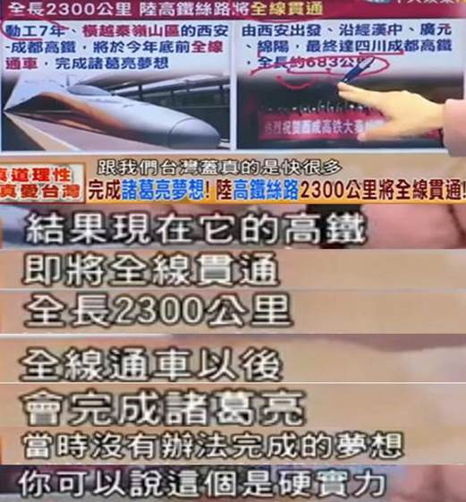 比如前不久有家臺灣電視臺的主持人在討論所謂“中國與第三世界國家的投資外交”議題時大放厥詞,沒想到被當天的嘉賓用大陸的“高鐵外交”完美回懟:他講大陸只花了3年便在阿爾及利亞建設了一段400多公里的高鐵,更自黑道“如果換成臺灣,可能要20年”。