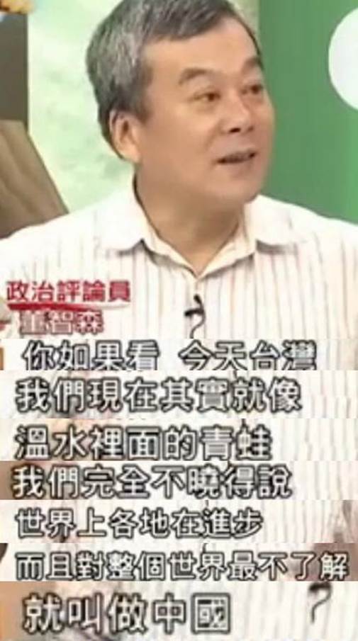 有臺灣學者表示:如溫水之蛙的臺灣看不到世界的進步,尤其不了解中國大陸