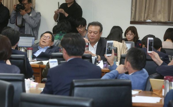 民進(jìn)黨與國民黨昨日都發(fā)布甲級動員。據(jù)臺灣《中時電子報(bào)》報(bào)道,會議室一早就被動員的“立委”、聯(lián)席會官員、各家媒體塞滿,有“立委”反應(yīng)沒有位置坐。“時力立委”徐永明一開始就占據(jù)質(zhì)詢臺不走,要求更換更大的會議室。