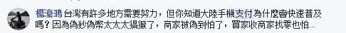 當(dāng)然,也有一些不同的聲音,比如有臺灣網(wǎng)友就說了:你們懂什么?大陸手機支付會如此快速普及,都是因為“偽鈔偽幣太太太猖獗了,商家和買家偽到怕了”。