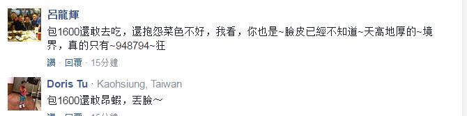 之后,有網友在網上替新郎抱屈,文中提到,明明是某A比較晚進場才會沒位子坐,而“宴會廳的工作人員也馬上安排空位給晚到的嘉賓了”,接著還為菜色“平反”,“新人們也是很認真的在準備宴會!試了高雄大大小小間餐廳的菜。即使真的菜色不佳,也不需要這樣說吧”。