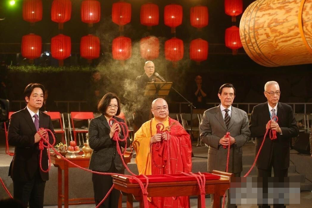 蔡英文、賴清德、馬英九、吳敦義、前臺北縣長周錫瑋與臺北市副市長鄧家基等人,昨天(15日)晚間至今天凌晨都參加撞鐘祈福法會。這是法鼓山首度有島內前后任領導人同臺,賴清德則是第一次到法鼓山參加撞鐘法會。方丈果東法師帶領馬、蔡、賴、吳等人一起供燈祈愿,認為這是無比殊勝因緣。