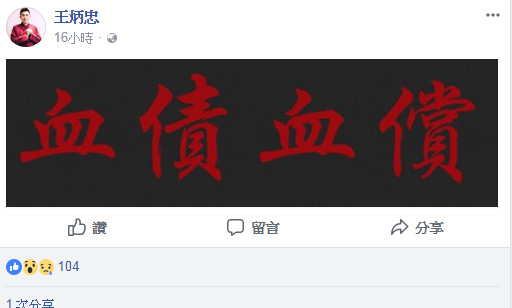 王炳忠發文“血債血償”。(圖片取自臺媒)