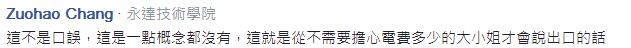 臺網友也忍不住嘲諷:“什么推論?都不用多搜集資料核實后再發言?光她穿長袖吹冷氣,2顆電池撐5天?”“有錢人怎么會懂電費要怎么算”“她不食人間煙火久矣!她說的都是天上的話!薄八苑▏伺渚坪忍,一天到晚說醉話,都不知她再說什么!”“看她講錯了會不會道歉?”“只有電池有什么用,要用啥發電后蓄電呢?難道是愛!”