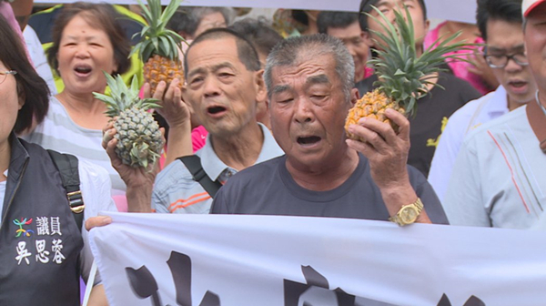 鳳梨農(nóng)北上抗議。(圖片來源:臺(tái)灣“東森新聞云”)