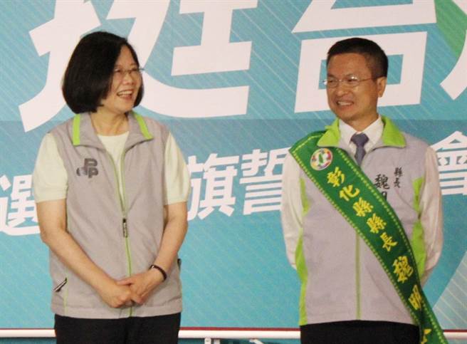 蔡英文與彰化縣長魏明谷。(圖片來源:臺灣“中時電子報”)