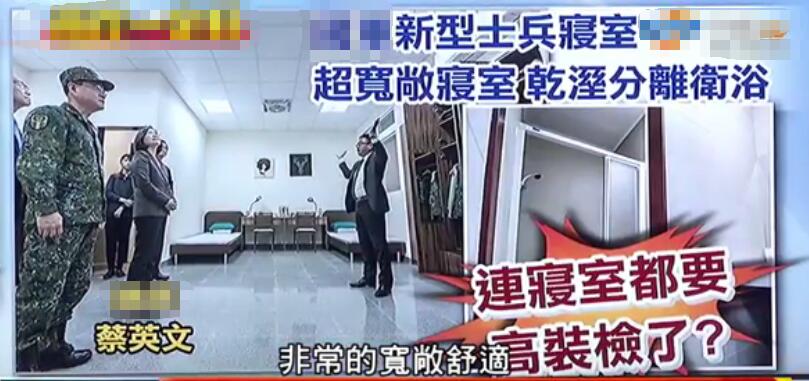 據悉,蔡英文曾到臺灣軍營中參觀所謂的新型士兵寢室,從畫面中可以看到,為官兵準備的新寢室超級寬敞舒適不說,連衛浴間都是干濕分離的!