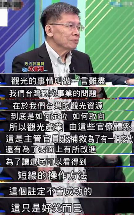 憑心而論,這是一個很重要的原因,但除了這個“外因”,“內因”也同樣不可回避,誠如臺灣政治評論員沈富雄所言,為什么說臺灣最美的風景是人?因為“人以外的地方有待改善”!