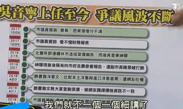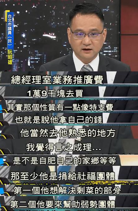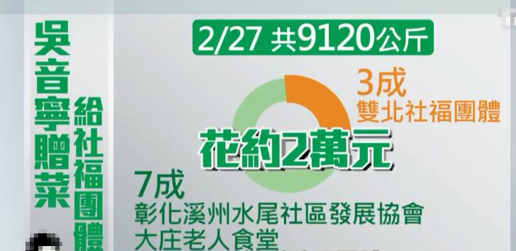 但可笑的是這筆所謂做公益的錢并不是從吳音寧自己腰包里掏出來的,而是動用了“北農總經理室的業務推廣費”;更有趣的是,國民黨臺北市議員王欣儀發現,這9.12噸里有逾7成的蔬菜被送到了吳音寧的老家、其堂哥擔任鄉長的彰化溪州,于是不禁質疑吳音寧是公器私用,“慷全民之慨做個人人情”。