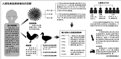中國疾控中心相關專家:既往確認感染人的禽流感病毒有H5N1、H9N2、 H7N2、H7N3、H7N7、H5N2、H10N7。H7N9亞型流感病毒既往僅在禽間發現,在荷蘭、日本及美國等地曾發生過禽間暴發疫情,但未發現過人的感染情況。目前尚未證實該病毒具有人傳人的能力。