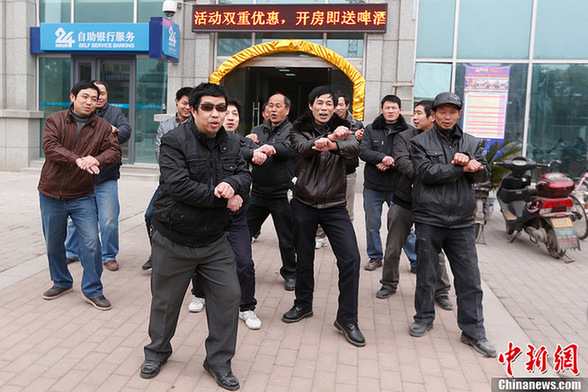 資料圖片:2013年1月21日下午,在武漢東西湖區七雄路星光大道音樂會所門前,一群農民工跳起了江南Style騎馬舞,引來不少路人圍觀。記者了解得知,年關將至,40多位農民工因為沒拿到工錢,被逼無奈才“出此下策”。(圖片轉自中新網)