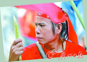在與政府的持續對峙中,“紅衫軍”曾利用尖竹棒當作土制武器。圖為一名“紅衫軍”抗議者在新搭建的路障后守衛。