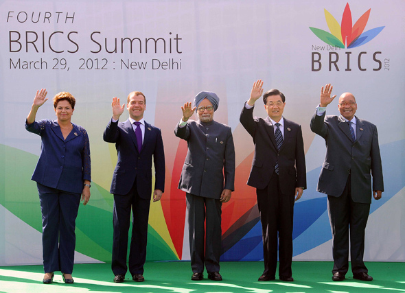 2012年3月29日,金磚國(guó)家領(lǐng)導(dǎo)人第四次會(huì)晤在印度新德里舉行。這是胡錦濤主席同巴西總統(tǒng)羅塞夫、俄羅斯總統(tǒng)梅德韋杰夫、印度總理辛格、南非總統(tǒng)祖馬合影。