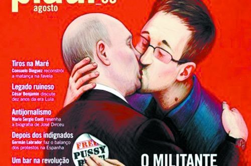 巴西一文化雜志的八月封面刊登了斯諾登、普京“擁吻照”