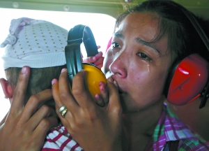 11日,吉萬一名母親在登上救援的直升機后激動落淚。