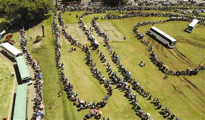 12日,南非比勒陀利亞,曼德拉遺體瞻仰第二日,曼德拉的遺體被送往聯邦大廈,大批民眾排成長而曲折的隊列前往瞻仰。根據安排,曼德拉的遺體今日將被運往東開普省的烏姆塔塔,15日在家鄉庫努村下葬。