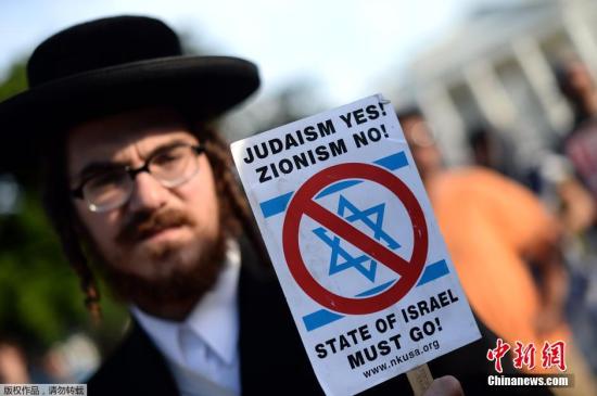 2014年7月16日,人們參加在華盛頓白宮門前的示威活動,抗議以色列對巴勒斯坦加沙地區的致命爆炸事件。 巴以沖突事件已導致223名巴勒斯坦人死亡,其中大部分為平民。