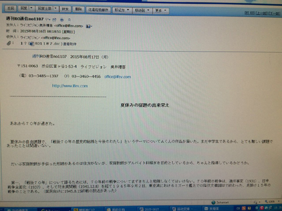 前不久收到了A同學(xué)的暑假作業(yè),題目是《戰(zhàn)后70年的歷史概括與今后的我》(譯者注:此為作者虛擬的題目。安倍講話無標(biāo)題)。對(duì)于中學(xué)生的他來說,這肯定是一個(gè)非常難的題目。不難看出有家教協(xié)助完成的跡象。雖然這也是難免的,但不知道那些只為賺取打工錢的家教指導(dǎo)得如何。