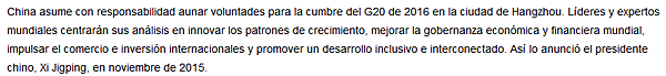 在歐洲,一些國家不斷遭受恐怖襲擊,西班牙組建了臨時政府,英國脫歐;在拉美,巴西試圖通過罷免其總統(tǒng)來克服一系列政府丑聞的負(fù)面影響,委內(nèi)瑞拉的經(jīng)濟(jì)幾近崩潰。在這樣的背景下,輪到中國來證明其提議在新的世界秩序中的可行性。這樣的背景也要求各國根據(jù)人民的力量和政府的民主能力做出改變。