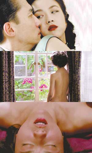 總的來說,因為對張愛玲的原著小說太過熟悉,劇情沒什么新鮮感。但李安交出的答卷可以說是不過不失,沒有太大的驚喜,也沒有太大的漏洞。至于國人好奇的那七分鐘,可以負責任地告訴大家,不看也沒什么損失,看了也不會受到毒害。沒有一點色情的意味,也完全沒有美感;缺了令人臉紅耳熱的呻吟和美倫美奐燈光的幫襯,看到的只是兩具不加修飾、線條一般的肉身在扭曲交纏而已。如果單獨截出來這一段來看,倒很象在毒氣室里絕望掙扎的無辜平民!從這一點上來說,李安的目的已經(jīng)達到,男女主角末路狂花般的絕望氣息已經(jīng)被觀眾感知到。
