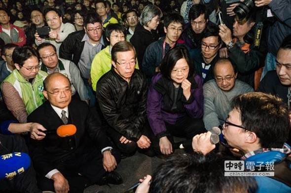 民進(jìn)黨幾位重要人物日前也出現(xiàn)在反服貿(mào)活動(dòng)中。(圖片來源:臺(tái)“中時(shí)電子報(bào)”)