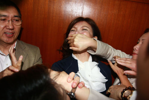 臺(tái)灣立法機(jī)構(gòu)21日審查關(guān)于開放大陸學(xué)生來臺(tái)就學(xué)的“陸生三法”。教育主管部門及大學(xué)校長紛紛表示支持,民進(jìn)黨民代則激烈反對。圖為綠營民代捂住國民黨民代趙麗云(中)的嘴阻撓會(huì)議進(jìn)行。