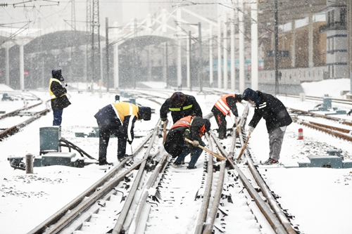 再大的風(fēng)雪,援鄂保障也不能停。在民航、公路因降雪不能繼續(xù)提供服務(wù)時(shí),鐵路部門主動(dòng)承擔(dān)起社會(huì)責(zé)任。面對(duì)漫天大雪,沈陽鐵路部門連夜將機(jī)車安裝金屬滑板,軌道車啟動(dòng)熱備,千里鐵道線上的鐵路干部職工在刺骨的寒風(fēng)中晝夜掃雪除冰,幾十個(gè)小時(shí),萬人堅(jiān)守,萬件除雪工具,凍腫的手,凍紅的臉,凍僵的腳……默默無聞的鐵路工作者在平凡的崗位中恪盡職守,確保了列車在風(fēng)雪中滿載一批批生活物資奔向重點(diǎn)疫區(qū)。可以說,這一場(chǎng)雪沒有使鐵路部門“失措”,這種快速反應(yīng)、高效工作的能力是鐵路干部職工用行動(dòng)釋出的甘于奉獻(xiàn)、勇于擔(dān)當(dāng)?shù)淖藨B(tài)。