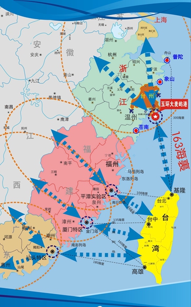 愛在163海里,因為有兩岸各界的共同努力。近幾年因民進黨當局“臺獨”行徑影響到大陸游客赴臺的意愿,但臺灣游客赴大陸的熱情仍然日益高漲。玉環積極開展宗教民俗交流團、濟公文化訪問團、海上直航中秋夜等主題活動,還創新出“玉環一日游”線路,開展兩岸青年創業創新、體育、公益及科教文衛等交流活動,在這些構建兩岸友誼之橋的過程中,2018年的臺灣游客數量已接近8888人次,遠超往年水平。有人潮往來,商路自然也就通了,2018年玉環進出口集裝箱1956標箱、同比上升84%,實現了“客貨齊增”,此外,玉環還積極建立跨界自造融創園,簽訂臺灣醫護管理人才暨產學合作三方協議,投資1.53億元、總面積2.7萬平方米的對臺直航新旅檢大樓,成為兩岸特色商品展示、交易及信息服務平臺……今后還可望與臺灣在半導體芯片、高端機床、港口貿易、旅游等行業共享發展成果、優勢互補。