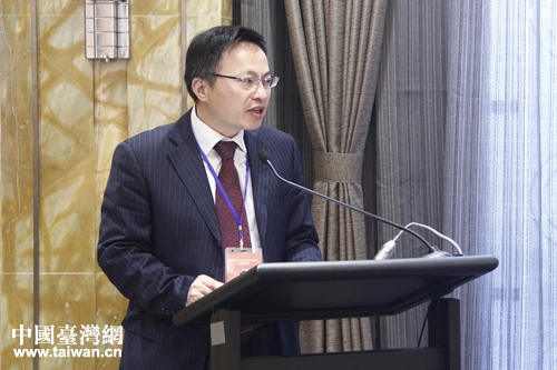 上海臺灣研究所常務(wù)副所長倪永杰在研討會上進行主題發(fā)言。(中國臺灣網(wǎng) 張潔 攝)