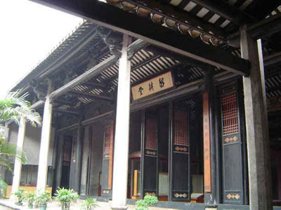 廣東民間鄉村祠堂建筑設計的典型代表,創建于600多年前。面積有3000平方米。它的平面呈南北長條形,自南向北依次為大池塘、大天街、正門、牌坊、釣魚臺、中座、天井、后座及東、西廊和村祠、形成結構嚴謹,修飾華麗,規模宏偉的建筑物。