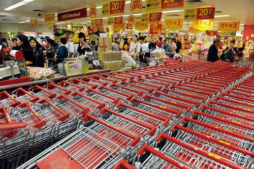 2月11日,香港銅鑼灣超市排起購物長隊。春節臨近,香港商家多措并舉,吸引大批內地居民赴港休閑購物、置辦各色年貨。新華社記者 宋振平 攝