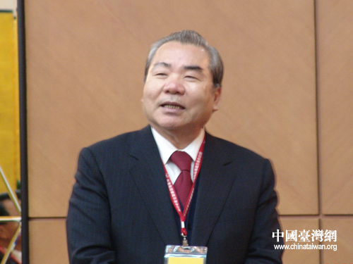 臺(tái)灣海峽兩岸和平統(tǒng)一促進(jìn)會(huì)會(huì)長(zhǎng)郭俊次在座談會(huì)上發(fā)言 。(攝影:趙穎芳)