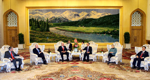 新華網(wǎng)北京12月13日電(記者李詩佳)國(guó)家主席胡錦濤13日下午在人民大會(huì)堂會(huì)見了來華參加第三次中美戰(zhàn)略經(jīng)濟(jì)對(duì)話的美國(guó)總統(tǒng)布什的特別代表、財(cái)政部長(zhǎng)保爾森等美方代表團(tuán)主要成員。
