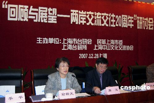 中新社上海十二月二十八日電 (記者 許曉青)“回顧與展望——兩岸交流交往二十周年”研討會今天在上海舉行。來自海峽兩岸的近五十位專家學(xué)者、知名人士相聚滬上,話說兩岸恢復(fù)民間往來二十年間的點滴心得。