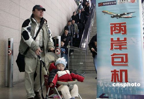 二日上午由北京起飛的海南航空HU七九八七航班,中午飛抵桃園機場。搭乘這架波音七三七--八00型客機的一百多名臺商和眷屬走出機場時表示,對于能夠按時回家過年感到十分開心。