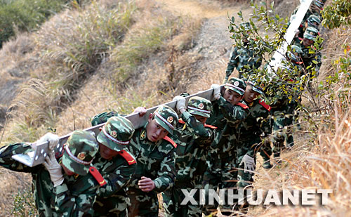 2月5日至6日,中共中央總書記、國家主席、中央軍委主席胡錦濤來到廣西桂林市考察抗災救災工作。這是胡錦濤同正在執行救災任務的廣州軍區某集團軍陸航團的官兵一起裝運救災物資。新華社發