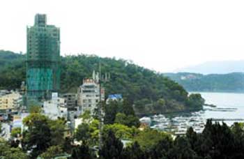看好大陸觀光客商機,打著房價一晚一萬六千元起跳、號稱住宿等級比涵碧樓更高級的日月潭日月行館,去年才取得南投縣政府的BOT特許經營權,原本預估要兩年才能完工,現在則是日夜趕工,計劃提前半年完工營運。轟轟的機具聲,讓住在旁邊的“觀光局”日月潭風景管理處長曾國基都抱怨說:“半夜兩點都會被嚇醒。”
