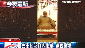 另據臺灣TVBS報道,“臺灣民主紀念館”里的300多支風箏,將在今天晚上連夜拆除,288基金會表示,拆除風箏后,大廳里不會只有蔣介石銅像,其它的空間規劃,準備下星期公諸于世。而拆風箏的過程,原本不準任何媒體拍攝,但和綠營關系不錯的臺灣民視電視臺卻被允許拍攝。(高大林)