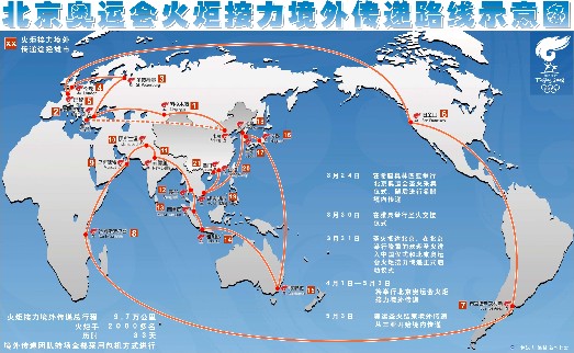圖表:北京奧運會火炬接力境外傳遞路線示意圖 新華社發