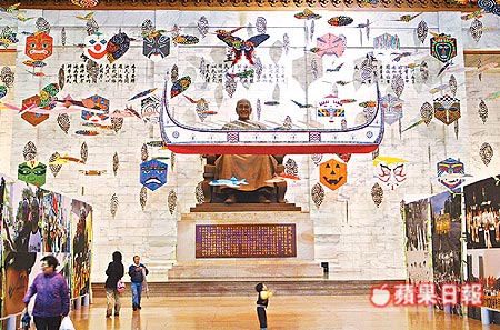 風(fēng)箏遮蔣(圖片來源:臺(tái)灣《蘋果日?qǐng)?bào)》)